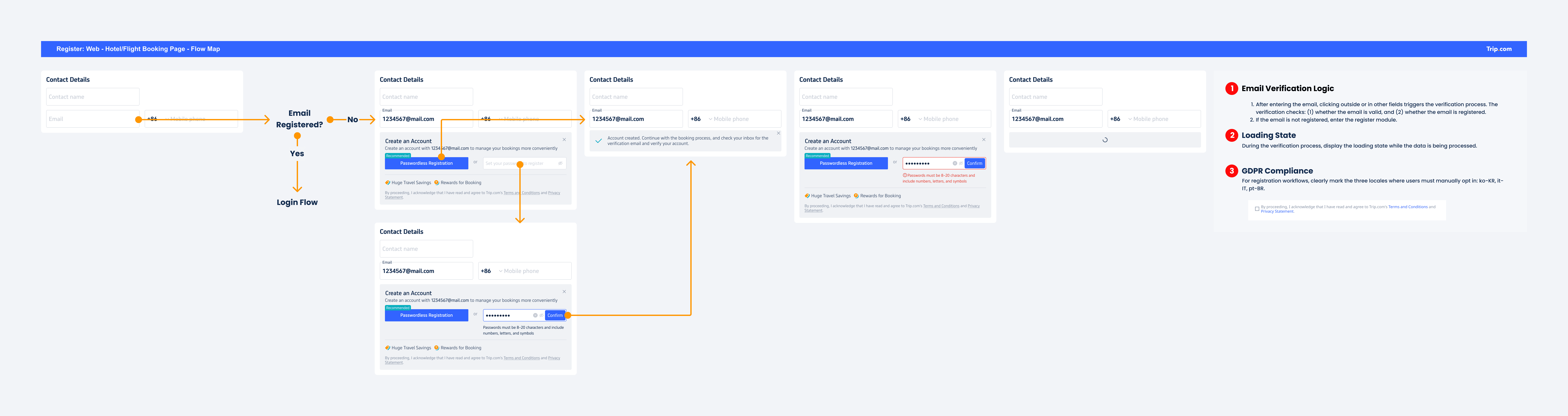 In the summer of 2023, I was honored to be selected as a UX Designer Intern at Trip.com, where I contributed to the design of Trip.com's products and internal B2B software. One of my key responsibilities was working on the login and registration module, a critical project for the Trip.com User Experience Design Common Team. This document focuses on a project related to optimizing the post-action pop-up component related to the registration and login module.