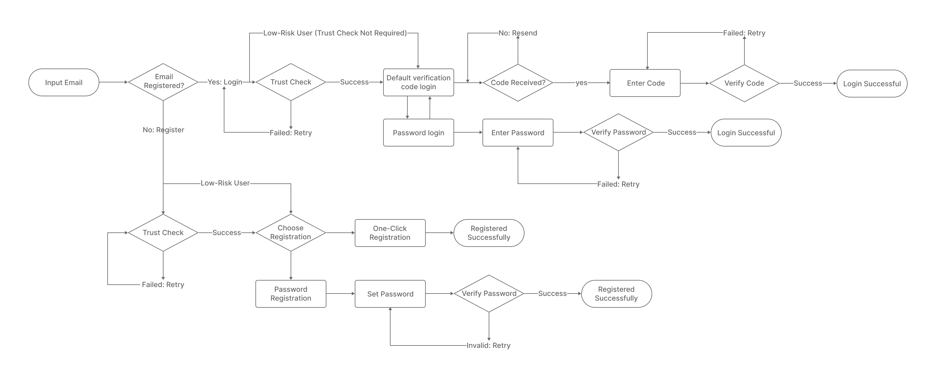 Simplify Login Method: Implement both password and verification code options (defaulting to the latter). (The form of email login link has also been considered, but users use different devices to view emails, which will lead to users still not logging in the original web page.)