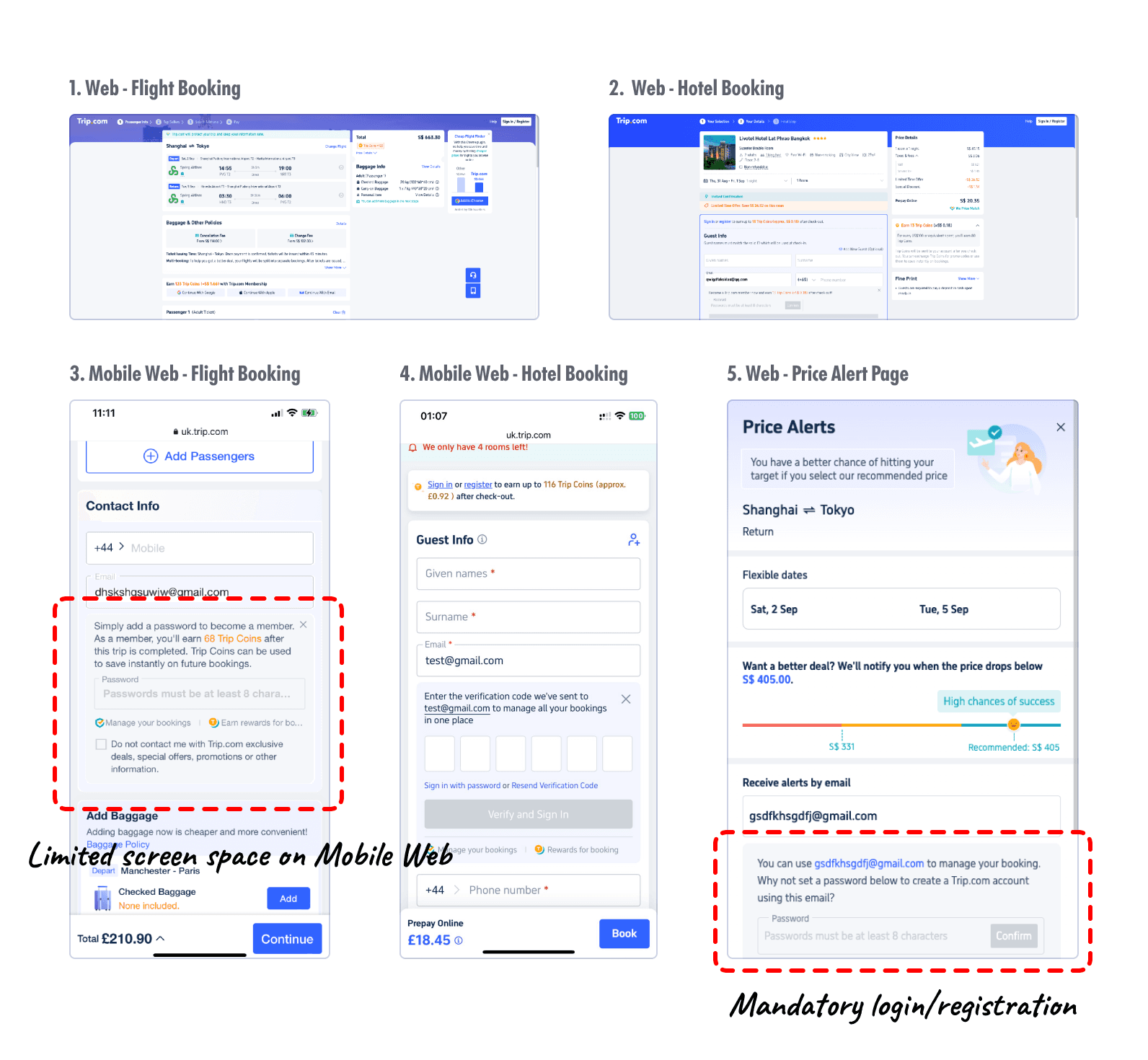 Issue 1 - User Motivation: Users have low motivation to register/login because Trip.com allows Guest orders, prioritizing immediate needs over account creation.